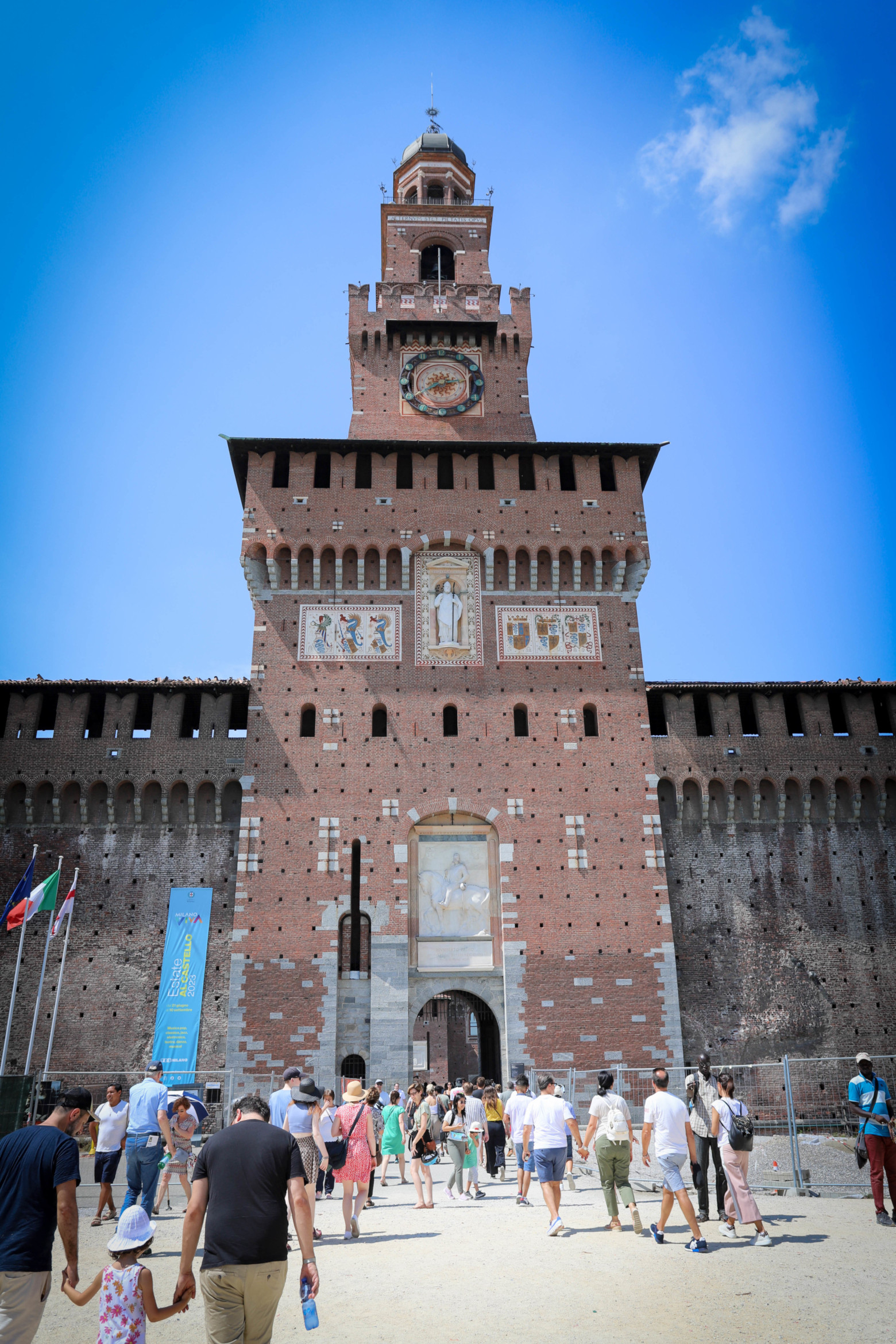 After lunch we walked slowly (as it was incredibly hot!) to the Piazza Affari (to see the rather rude Il Dito statue), then onto the Castello Sforzesco. We decided not to go into the museums here, instead wandering through the castle and to Sempione Park to see the Arch of Peace. Sadly the park was closed due to the number of fallen trees from the storm. So we had ice cream instead!