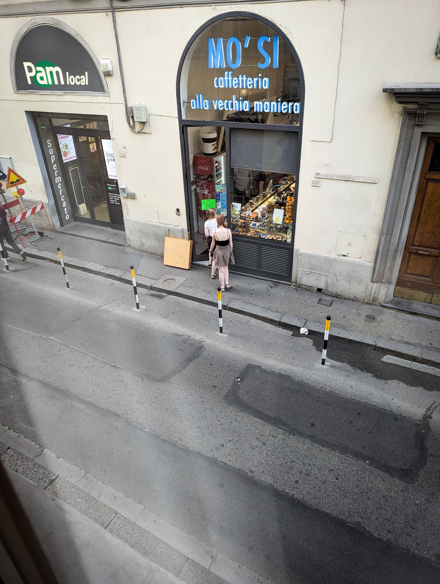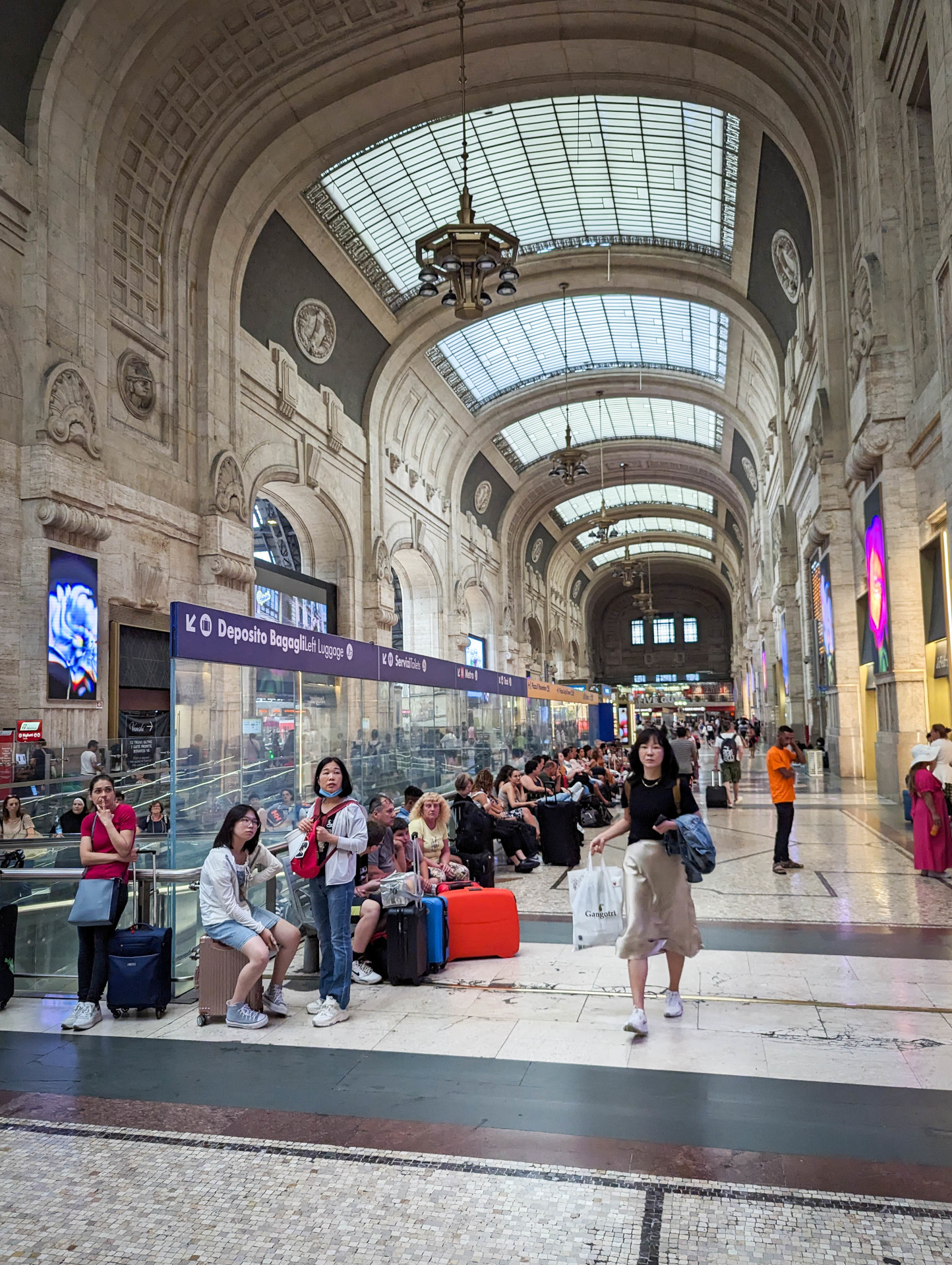 A walk and metro trip to Milano Centrale, we headed out of Milan and towards Florence. We booked a 4-person cabin on the train, very comfortable and would have been spacious if not for our luggage! Free food on the train was not the best….not up to Japanese bullet train standard, nor our own trains…but it was free. We arrived at Firenze Santa Maria Novella station a few hours later, and headed off in the heat to find our accommodation – Sette-Angeli Rooms. Clean and comfortable, but simple and not as exciting as the hotels we’d normally stay in.