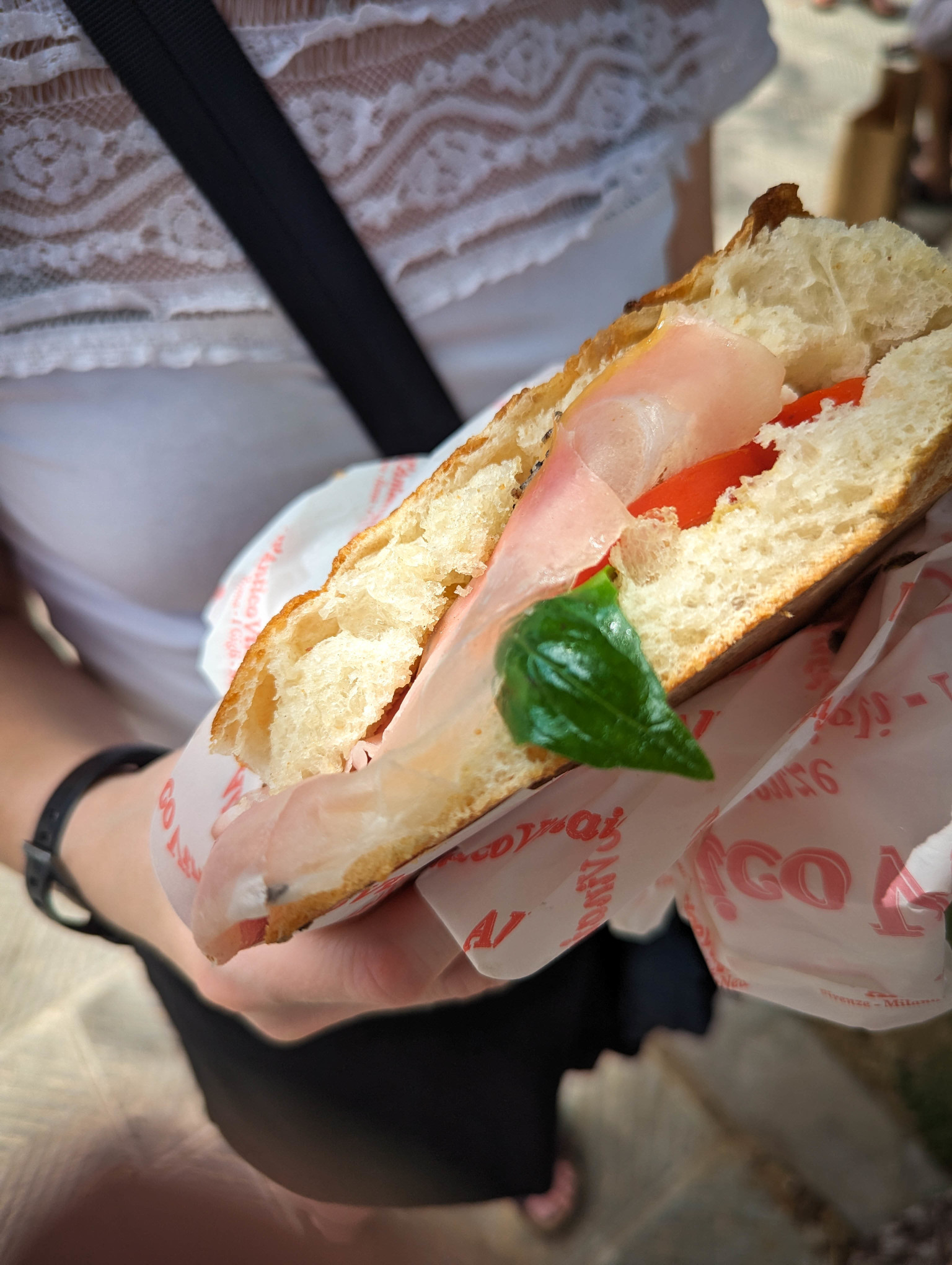 Then lunch. We wanted a sandwich from the highly recommended All’Antico Vinaio, and knew we’d need to queue…but when we arrived at the one closest to us (there are a few branches across Florence) we found massive queues – hundreds of people. They’d had a power cut and couldn’t make sandwiches!! So we decided to walk to another branch, near the Accademia Gallery. Not everyone was happy with the decision, but the food was excellent when we eventually got it.