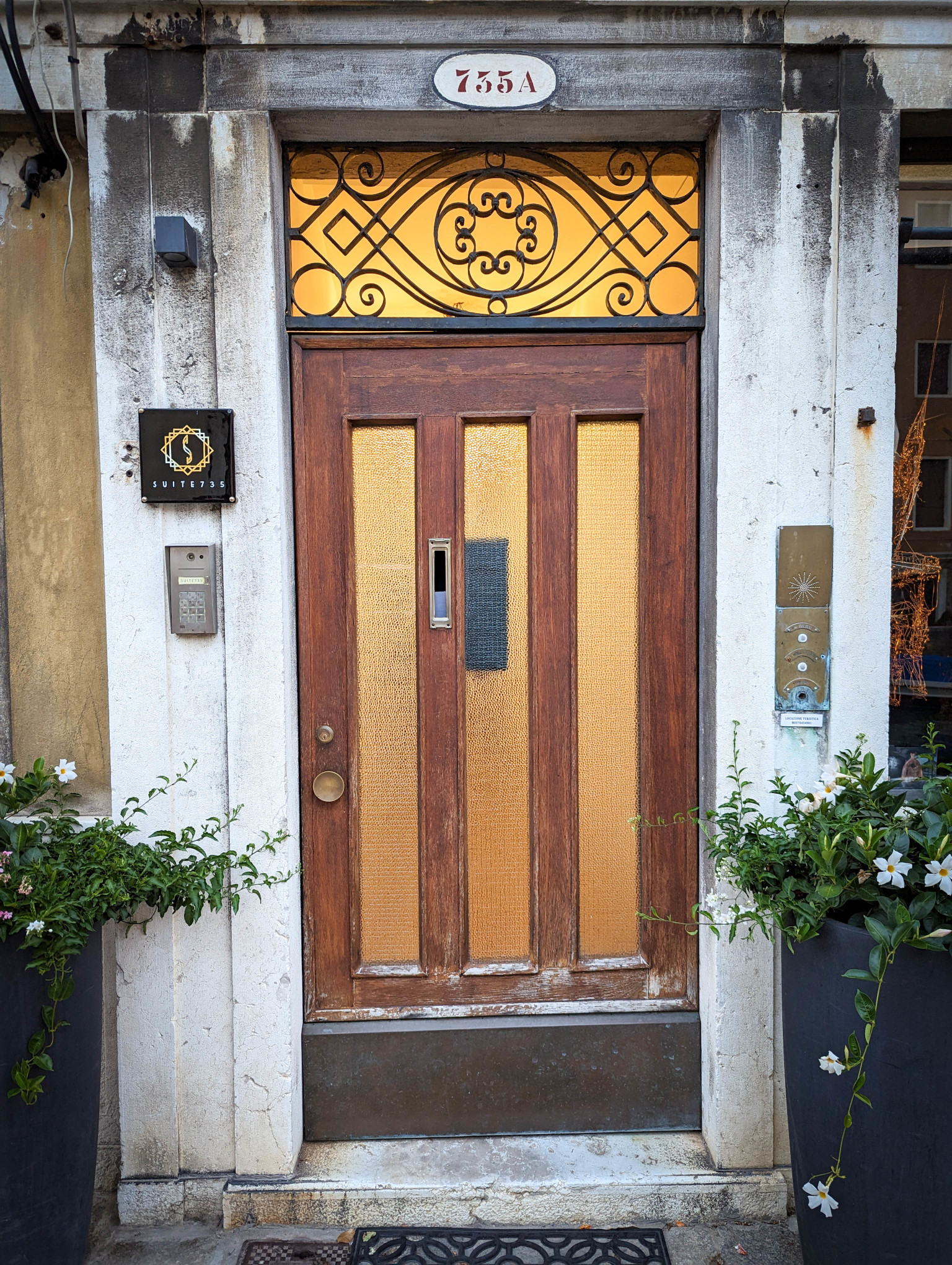 Before leaving Florence, we took a walk to a deserted Ponte Vecchio picking up breakfast on the way back. A short walk to Firenze Santa Maria Novella station, and another train journey to Venezia San Lucia. On arrival we found the water bus stop needed to transport us to near our accommodation, Suite735. The hotel was extraordinary – the rooms were luxurious, just 4 or 5 in total, with a view over a very quiet canal.