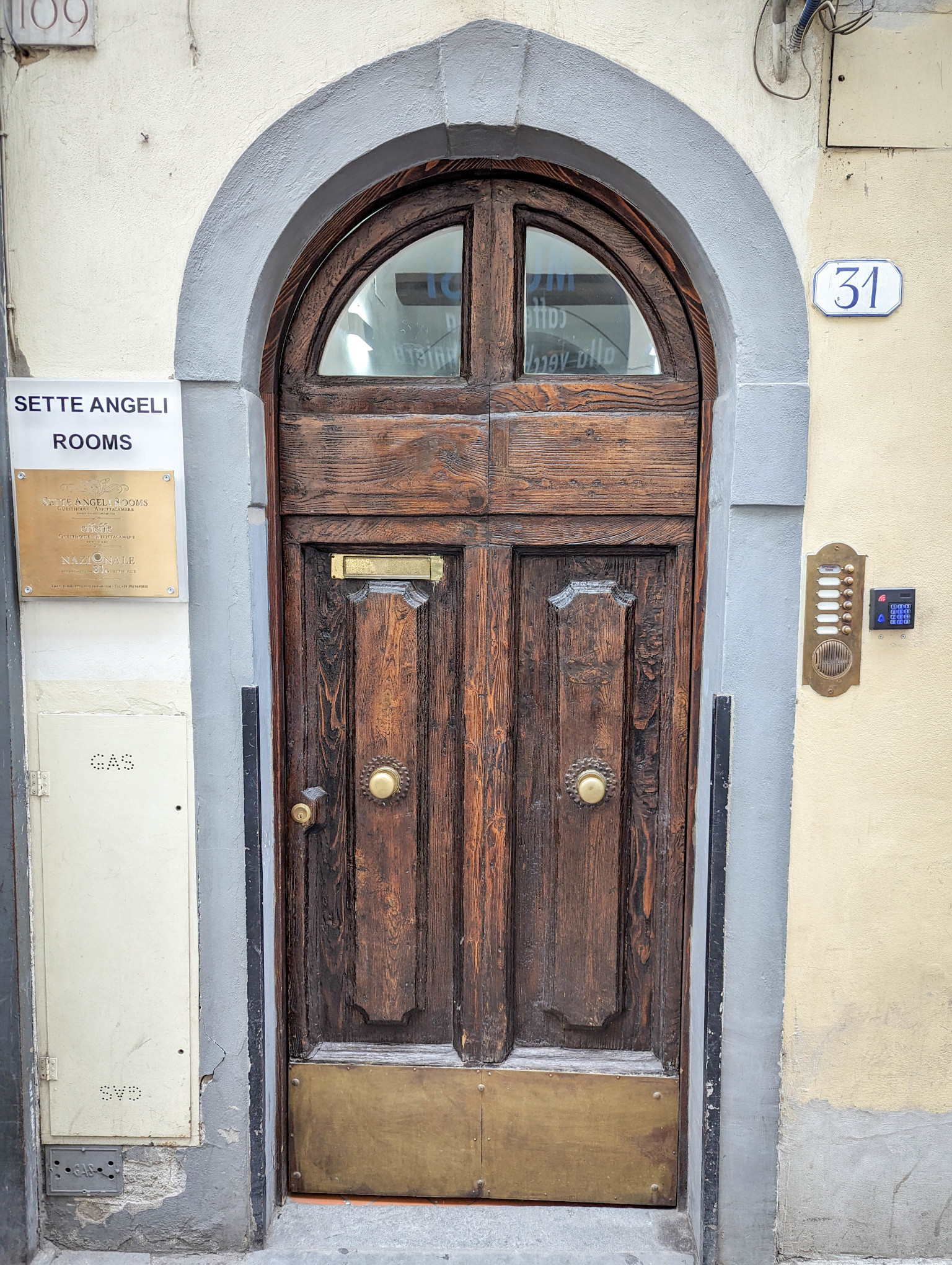 A walk and metro trip to Milano Centrale, we headed out of Milan and towards Florence. We booked a 4-person cabin on the train, very comfortable and would have been spacious if not for our luggage! Free food on the train was not the best….not up to Japanese bullet train standard, nor our own trains…but it was free. We arrived at Firenze Santa Maria Novella station a few hours later, and headed off in the heat to find our accommodation – Sette-Angeli Rooms. Clean and comfortable, but simple and not as exciting as the hotels we’d normally stay in.